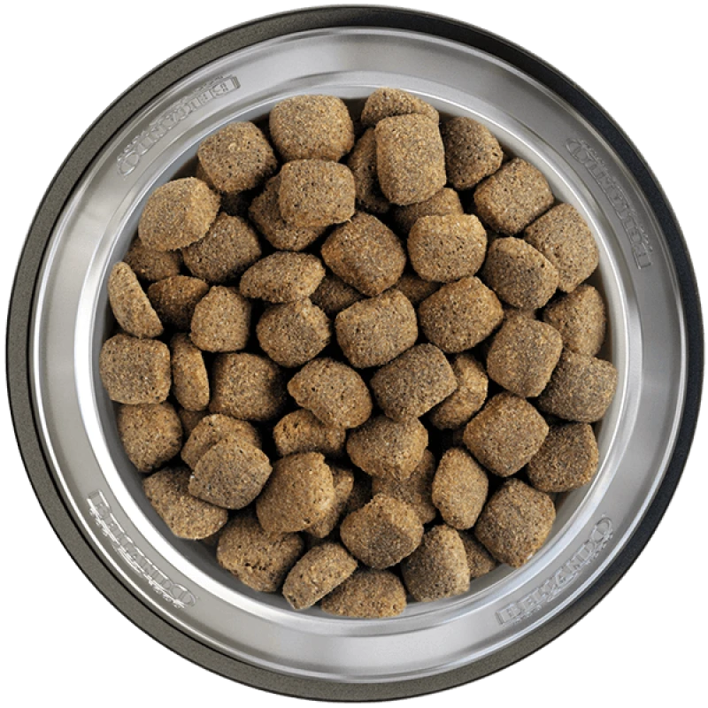 Frisches Geflügelfleisch (30 %); Reis (18 %); Mais; Hafermehl aus geschälter Saat; Geflügelprotein, aschearm, getrocknet (13 %); Ei, getrocknet; Fischmehl aus Meeresfischen (2,5 %); Gelatine, hydrolysiert (2,5 %); Bierhefe, getrocknet (2,5 %); Johannisbrotschrot, getrocknet; Rübentrockenschnitzel, entzuckert; Dicalciumphosphat; Geflügelfett; Pflanzenöl (Palm; Kokos); Geflügelleber, hydrolysiert; Chiasaat; Leinsaat; Natriumchlorid; Kaliumchlorid