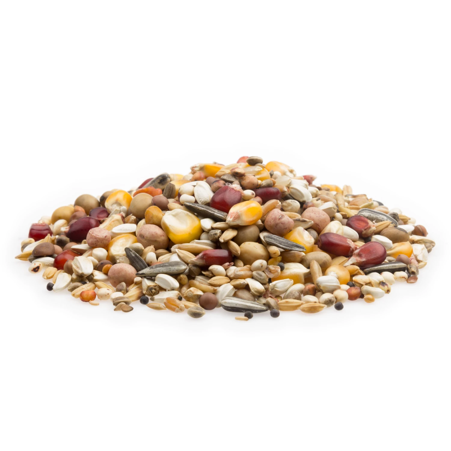 Durch die Beimischung der Power-Erbsen hat die Mischung zusätzlich eine leicht verdauliche und gut verfügbare Proteinquelle und kann dazu eingesetzt werden, protein- und energiearme Reisefutter zu veredeln. Für das zusätzliche Quäntchen Energie sorgt der fettreiche Top Mais.