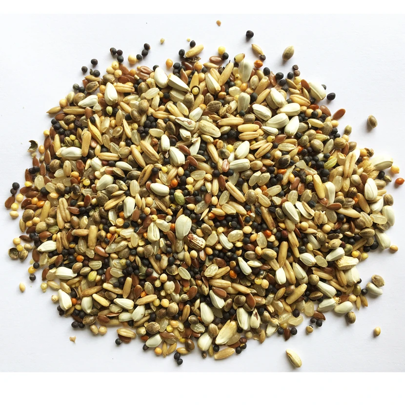 Bei der täglichen Fütterung 10 – 15 % Sämereien zum normalen Futter hinzufüttern.